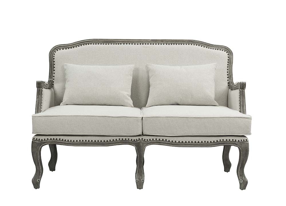 Finely crafted with superb carved details and a lovely natural finish, the Tania sofa flaunts a French cabriole silhouette that perches on graceful cabriole legs and showcases its antique-inspired profile. The nailhead trim accents give this piece a modern touch. It is beautifully upholstered in natural cream linen to complement your home and magnify your personal style.