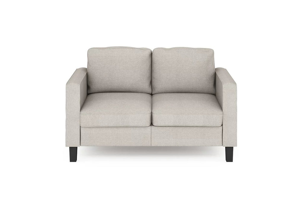 This lovely loveseat is sure to provide beauty and comfort for your home. The contemporary design features polyester upholstery, slightly tapered legs, square arms and a cushioned back and seat for enhanced comfort. Assembly for the loveseat is easy with the provided parts, hardware and step-by-step illustrated instructions. Wipe clean with a damp cloth and avoid any harsh chemicals to avoid damaging the finish of the product. Relax and enjoy the company of friends and family in style.- Made of wood and fabric