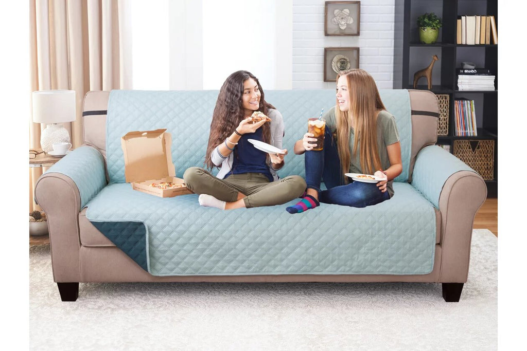 Cover up unsightly upholstery and enjoy a seat that looks good as new with this quilted slipcover. It's machine washable too, so you can always spruce up the look of your sofa in a snap. Durable quilted design, with soil and snag resistancy fits most furniture types. Made of 100 percent microfiber with polyester fill for easy-care.- Reversible