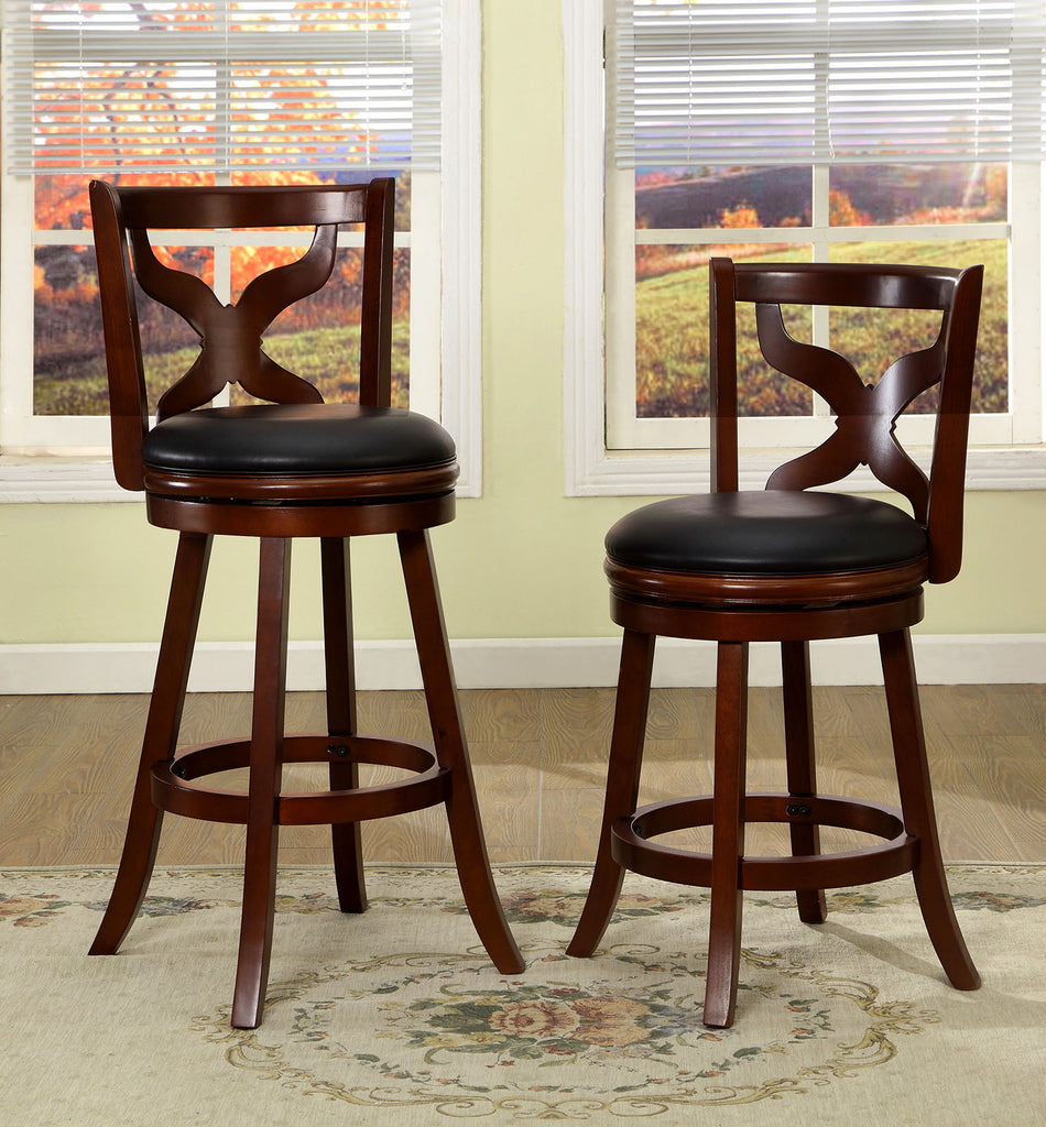 This swivel bar stool comes with a Pierced Splat back and finished in a dark cherry for an elegant look.