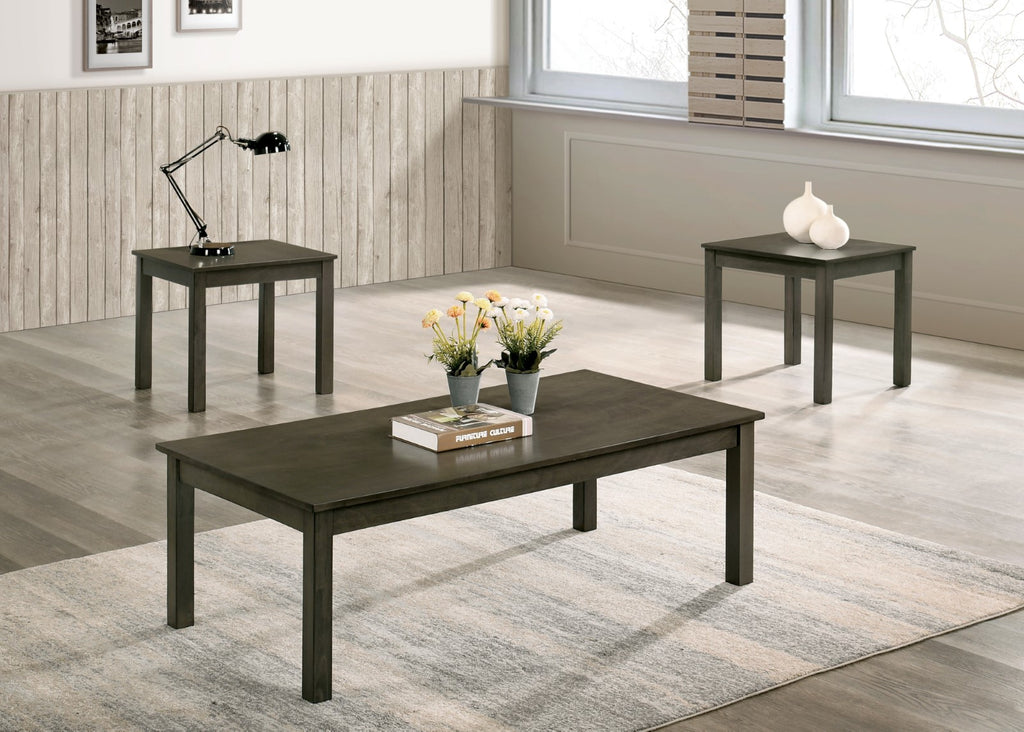 CECILY 3 Pc. Table Set, COFFEE TABLE: 47 1/4"L X 23 5/8"W X16"H, END TABLE: 21"L X 18 1/2"W X 18 7/8"H, 65lbs.