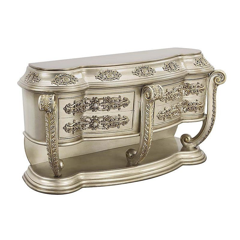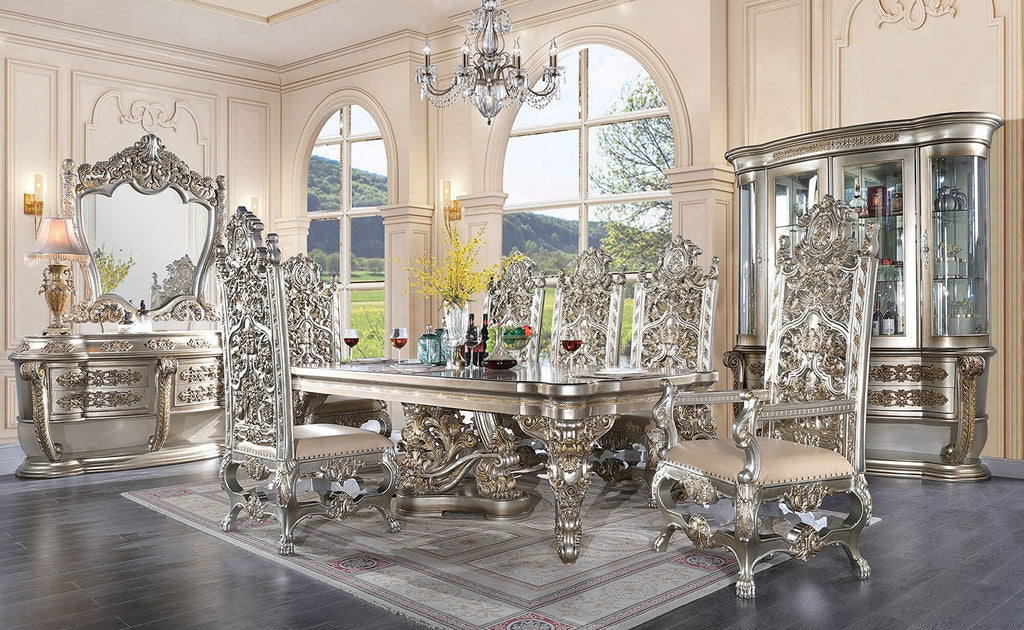 OverviewBigger is always better, the Danae Dining Room Collection by Acme Furniture is a true testament to that. This grand piece is sure to leave a lasting impression on everyone that feasts their eyes on it. The antique champagne and gold accents help enhance the ornamental details.
