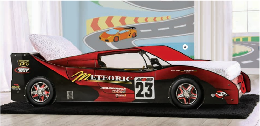For those aspiring race car drivers, here's the perfect bed to feed their aspirations! With replicated wheels and sponsorship markings, this race car bed is a dreamer's delight. And it's sturdy, too. Metal support structure and included slat kits ensure a stable, safe, and fun space.
