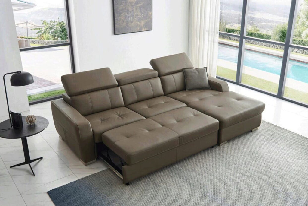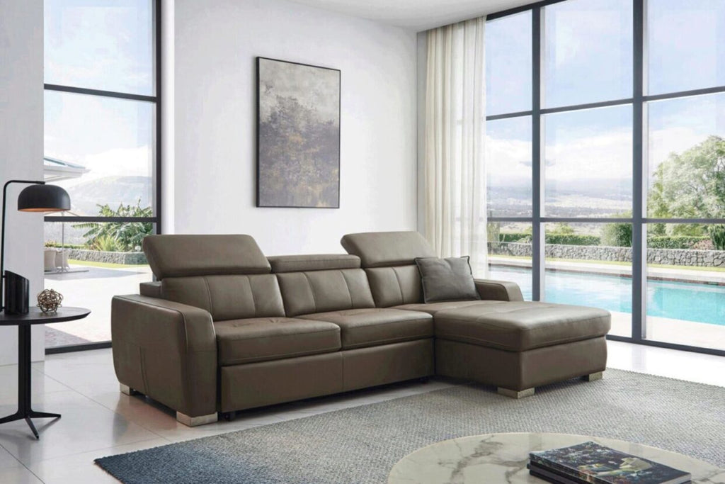 ESF 1822 Modern Taupe Top-grain Leather Sectional Sofa Right w/Bed