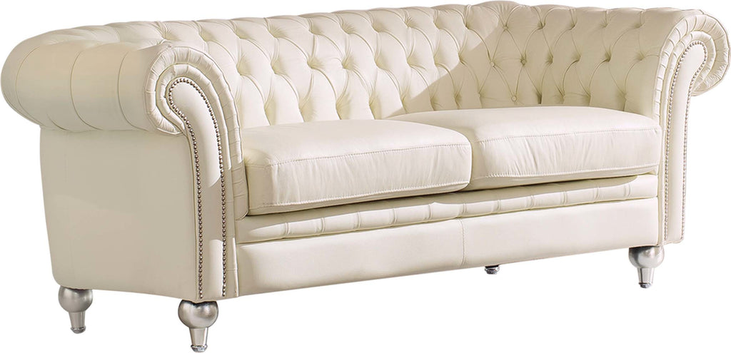 This living room set has an inviting appeal and comfort. Sofa, Loveseat and Chair are wrapped in finest genuine Italian leather with matching PVC on the back. You can always special order it in variety of colors. This Quality Furniture Set will bring luxury look to any room.