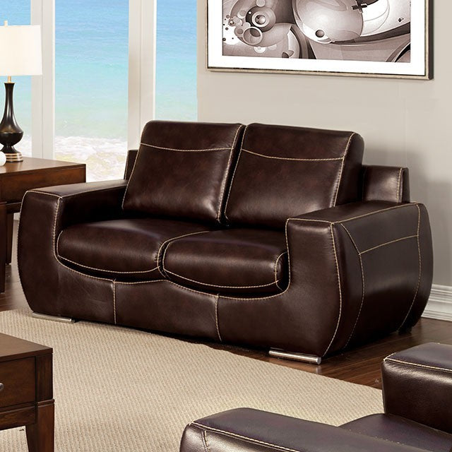 Furniture of America TEKIR LOVE SEAT Chrome Legs & Contrasting Stitching Bonded Leather