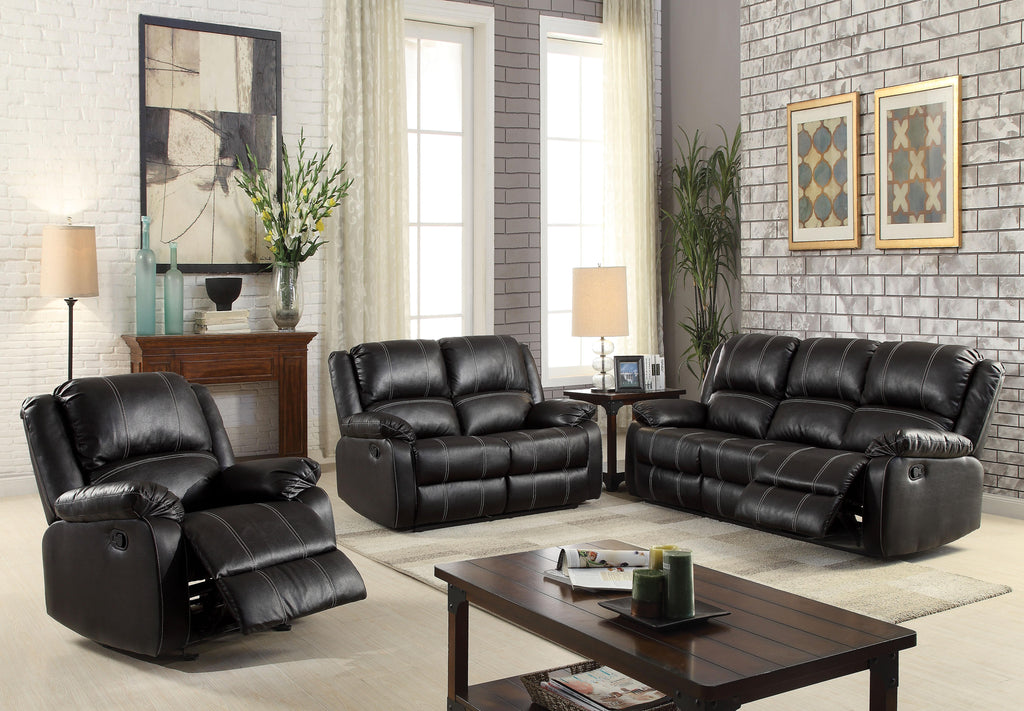 The Zuriel reclining sofa collection is a wonderful choice for any family room, combines luxurious faux leather with the comfort of padded, reclining seating. Comfortable contoured seats, soft to the touch while the reclining footrests offer full leg support. The recliner chair includes rocker function that allows you to rock gently up and down for ultimate comfort.